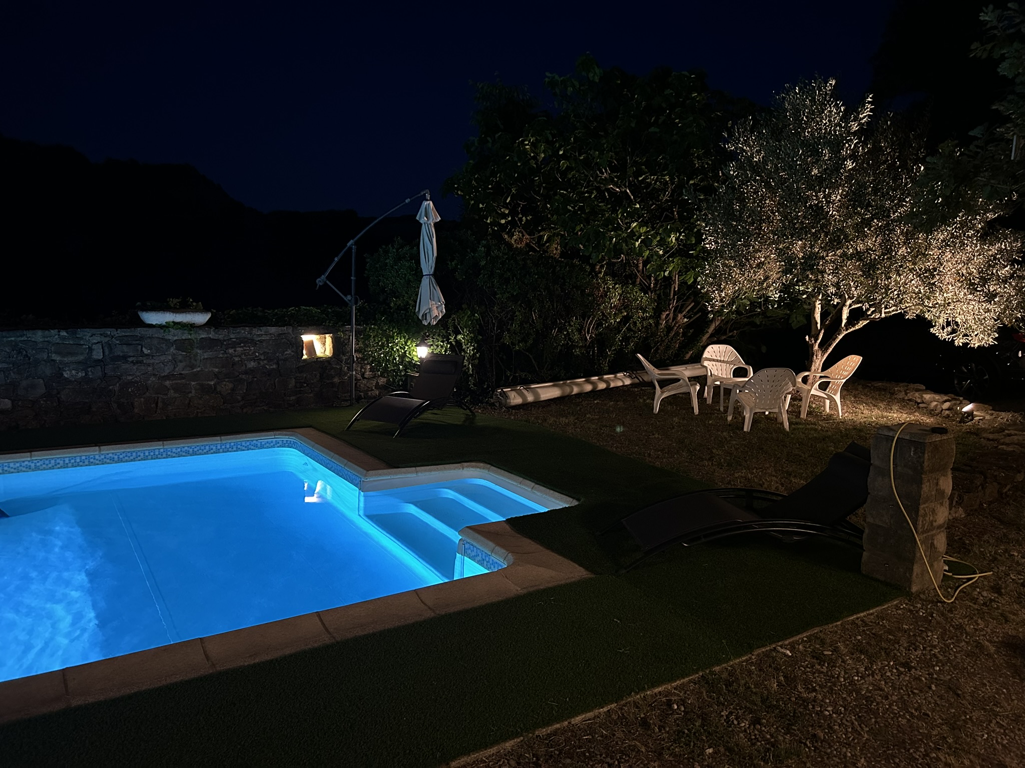 Coin terrasse + piscine de nuit